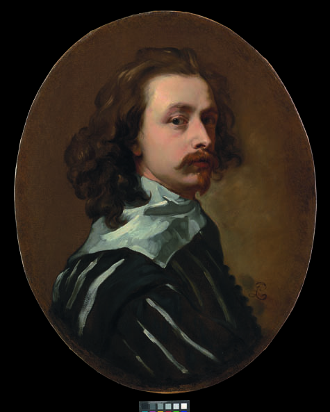 One question leads to another. Is it possible that Van Dyck painted no more than his face and rather shorter hair, and left posterity an unfinished portrait, to be completed by another painter? Was the canvas originally rectangular, now reduced to an oval? Examination of the reverse might give us an answer, for we can tell a great deal from distortions in the warp and weft. And if not by Van Dyck, then by whom is the costume? Could it be by Peter Lely, in whose collection there was Van Dyck’s “Own picture in an Oval” of similar size (measurements vary when paintings are taken from their frames)?