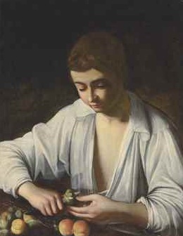 I was surprised to see a copy of Caravaggio's Boy Peeling Fruit (above) sell so well at £218,500. I happened to see the original recently (in the Royal Collection) and the picture at Christie's was some way off even being called 'Studio' of Caravaggio, if indeed he had a studio. But marketing a copy, which would normally be catalogued as 'circle of' or 'after', as 'Associate of Caravaggio' perhaps gave the picture an air of being closer to Caravaggio than it really is. The original has a pentiment of a leaf behind the peeled fruit - which presumably would only have emerged through the white drapery after a period of time. In the copy at Christie's that pentiment has itself been copied, but as a kind of smudge or shadow in the drapery, which suggests the copyist didn't really understand what was going on in the original. So one wonders quite how close to Caravaggio the copyist was, even in date.