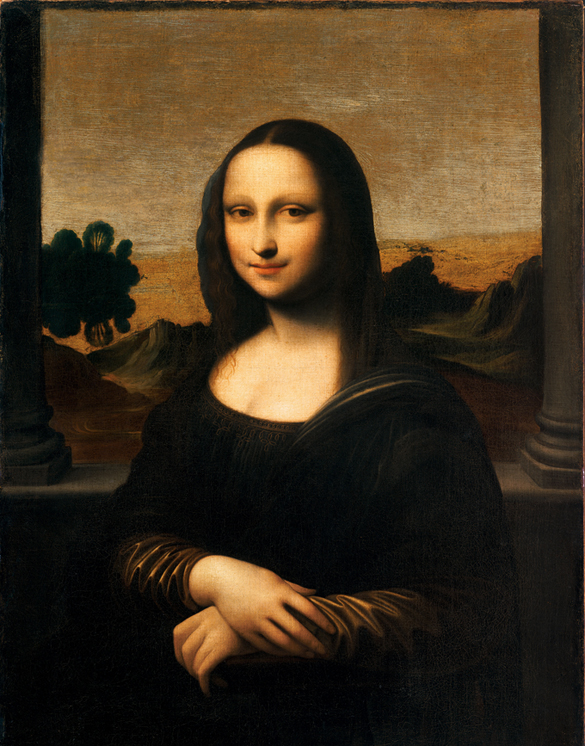 (Much is made of the issue of the columns in Mona Lisa-ology. Proponents of the Isleworth Mona Lisa point to the columns in their painting and say it is evidence that it is not a copy of the Mona Lisa in the Louvre, because that has only fragments of column visible. We must here, however, come back to the issue of condition. We cannot be entirely certain (though some claim you can) that the Louvre picture has never been trimmed at the sides, perhaps even very early in its career. Or, perhaps an early copyist decided to add in slightly larger columns of their own accord, and copies were taken from that copy, and so on. Again, it’s one of those things we can’t be certain about.)