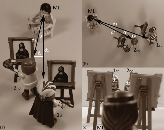 The researchers then could recalculate the position the painters took relative to each other and to the "Mona Lisa" sitter in Da Vinci's studio. They found that the horizontal difference between the two paintings was about 2.7 inches (69 millimeters), which is close to the average distance between a person's two eyes. (When a person observes an object, each eye sees a slightly different perspective of the object, both of which are sent to the brain and transformed into the three-dimensional representation of the object that we "see.")