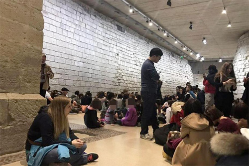 Regarding the exact place of the Louvre terrorist incident this morning, the photograph is taken at one of the commercial mall entrance, exactly the one near the Arc de Triomphe du Carrousel (stairs), with the stairs at right leading to a big corridor itself leading to the subterranean entrance of the Museum (again a big corridor leading to the zone under Pei's Pyramid. So we are in the non commercial zone of the mall, itself connected to one of the entrance of the museum.The statues on the left are, if I do remember well, rests of a pediment of the long ago burnt Tuileries Palace I do not know when the accident exactly took place, but if it is around 9-10, the are only people going to the museum in the mall, so not too many as it could be later in the day or in the week-end.