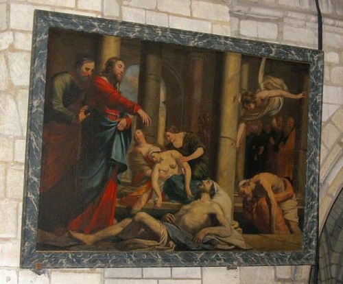 I've spotted some interesting pictures on Twitter (via. @jmvanhoutte2) of a recently conserved painting by the French painter Jacques de Létin (1597-1661). This painting of Christ healing the Paralytic is found in the Église Saint-Rémy de Troyes, Champagne-Ardenne.